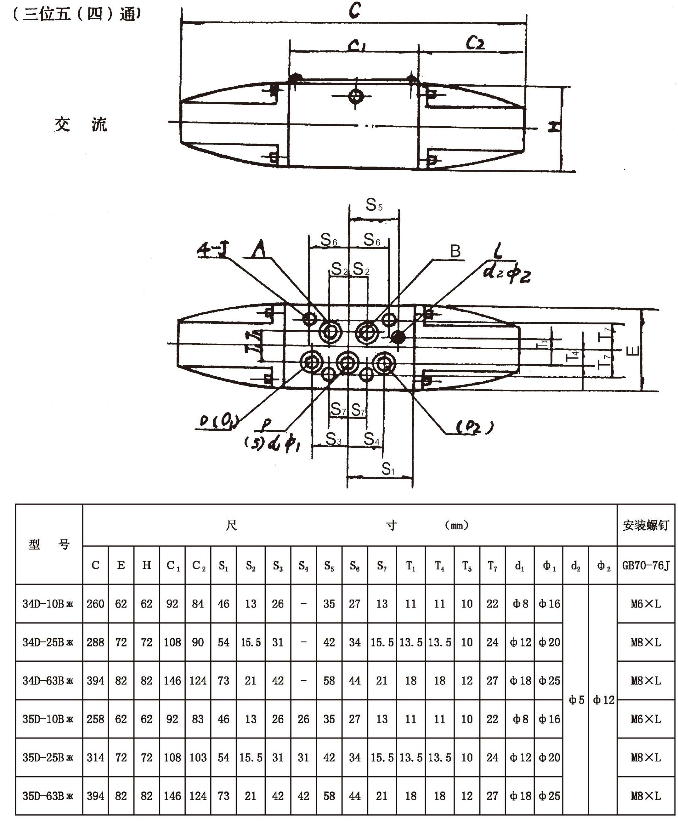 電磁滑閥電源的不同分為交流直流二種 。 交流電磁閥電壓為220伏, 頻率50周/ 秒。直流電磁閥電壓為24伏。電源電壓波動(dòng)值不得大于額定電壓的+5%及一15%。換向頻率每分鐘不大于30次 。 交直流電磁閥只是電磁鐵及推桿不同, 閥體結(jié)構(gòu)上完全通用。 P為進(jìn)油, A、 B至油缸左右腔。 0為回油, L為泄漏。